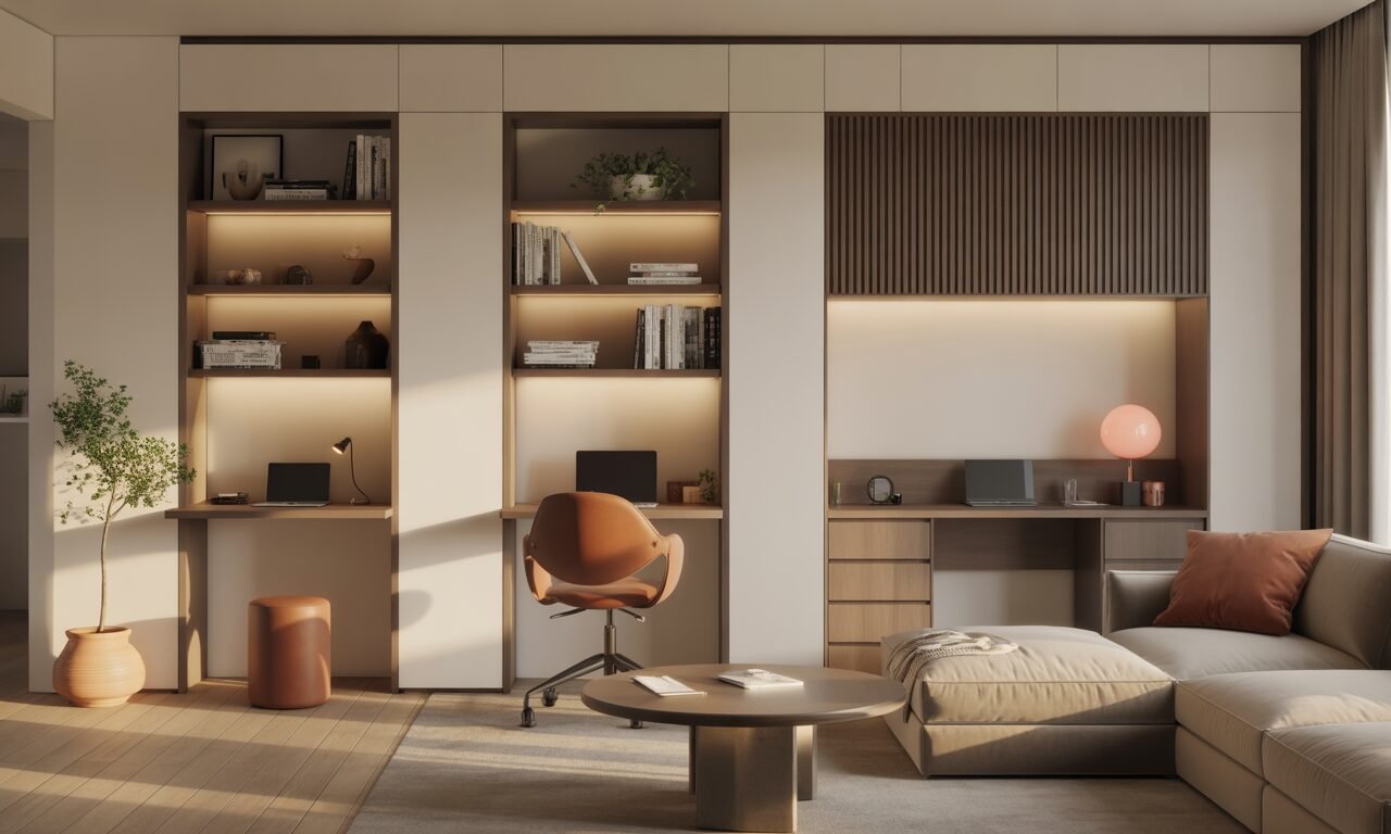 Objectif : travailler confortablement sans encombrer la pièce de vie. Voici cinq dispositifs éprouvés, vus aussi bien chez des enseignes grand public que dans des aménagements sur mesure, pour un coin bureau qui s’éclipse en un geste.
